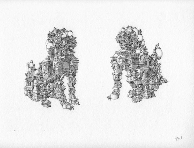 In between everything else, I’ve managed to get some commissioned work done too. Here is “Twin Guard-dog Guardians of the Universe”. Welcome.