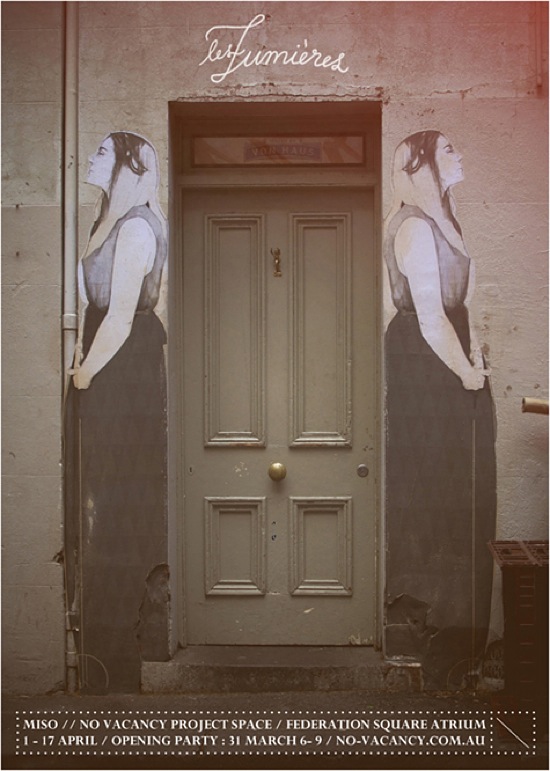 If you are in Melbourne this week, find some time to get down to No-Vacancy in the Atrium, Federation Square and see Miso’s latest solo show; Les Lumieres. For more information, visit the No-Vacancy website or City of Reubens. The show runs till April 17th.