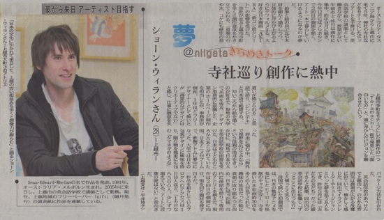 先日発行された新潟日報夕刊の記事です。このリンクからご覧になれます。Thank you! ショーン。